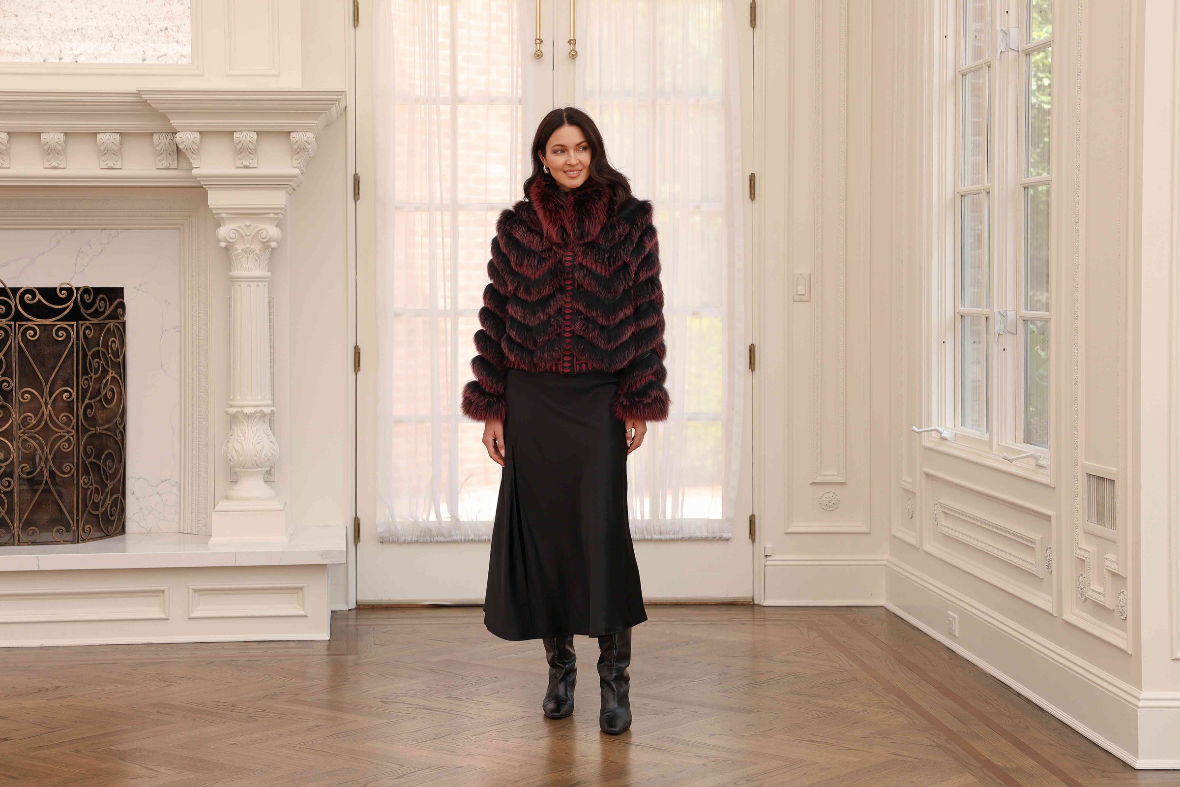 Reversible Silk to Fox Jacket in Caffe Latte
