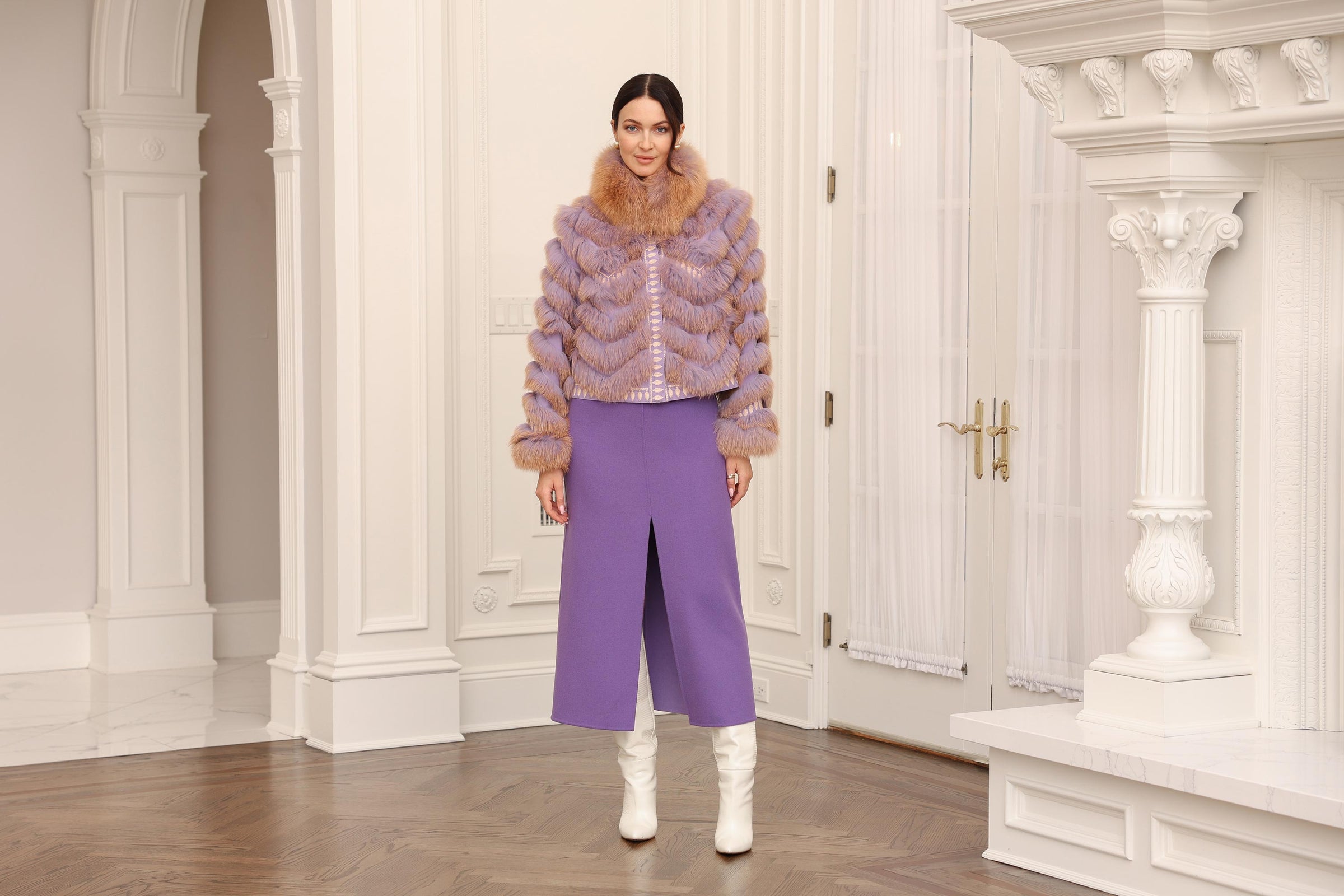 Reversible Silk to Fox Fur Jacket in Lavender Sorbet