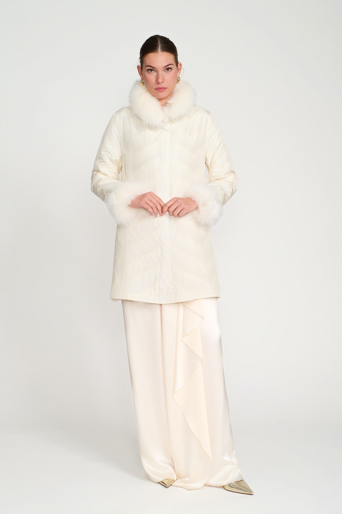 Reversible Silk to Fox ¾ Jacket in Arctic White